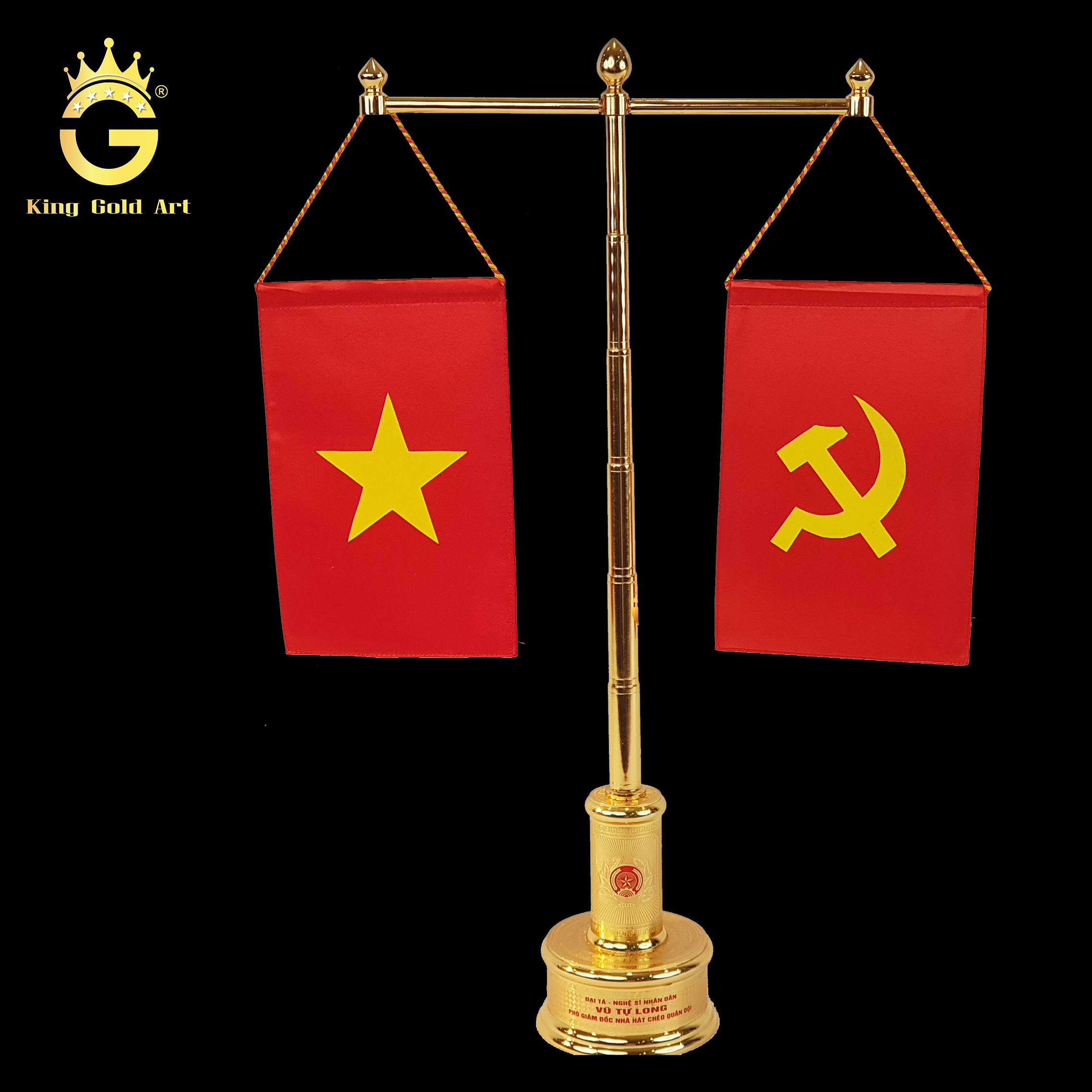 Cột cờ đúc đồng mạ vàng 24k cao cấp để bàn làm việc, quà biếu ý nghĩa