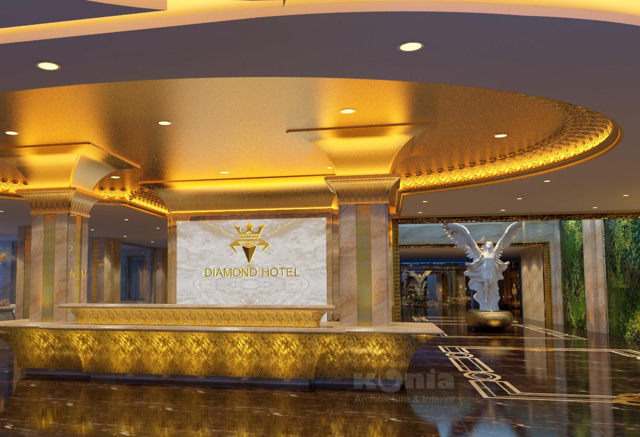 Lên mẫu thiết kế và phối cảnh: Dựng mô phỏng 3D chi tiết để khách hàng dễ hình dung tổng thể không gian sau khi dát vàng.