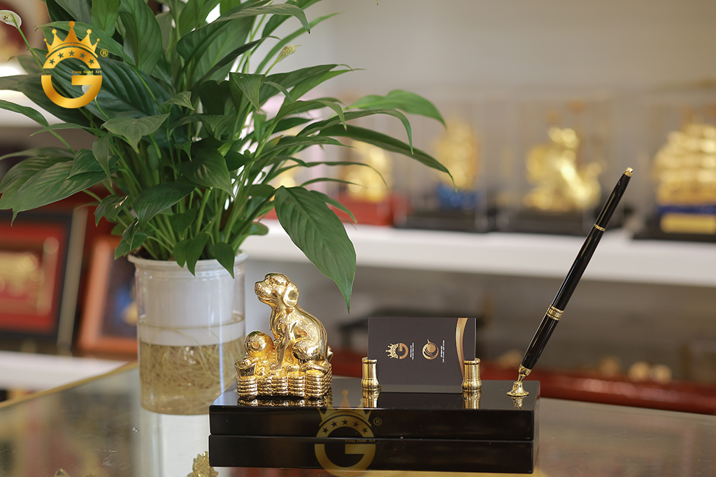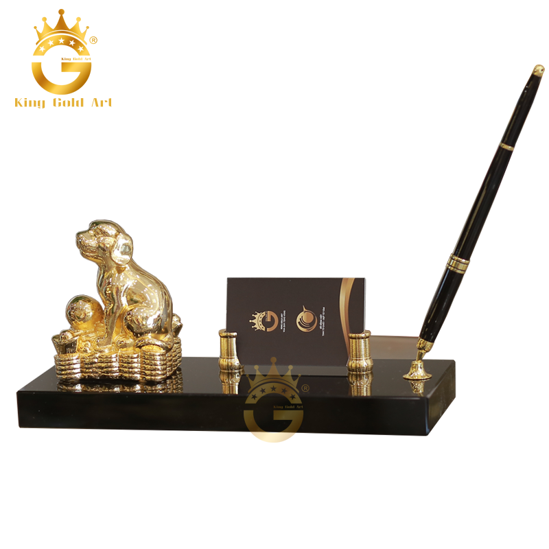 Gợi ý tặng đế cắm bút linh vật Tuất mạ vàng cho ai?