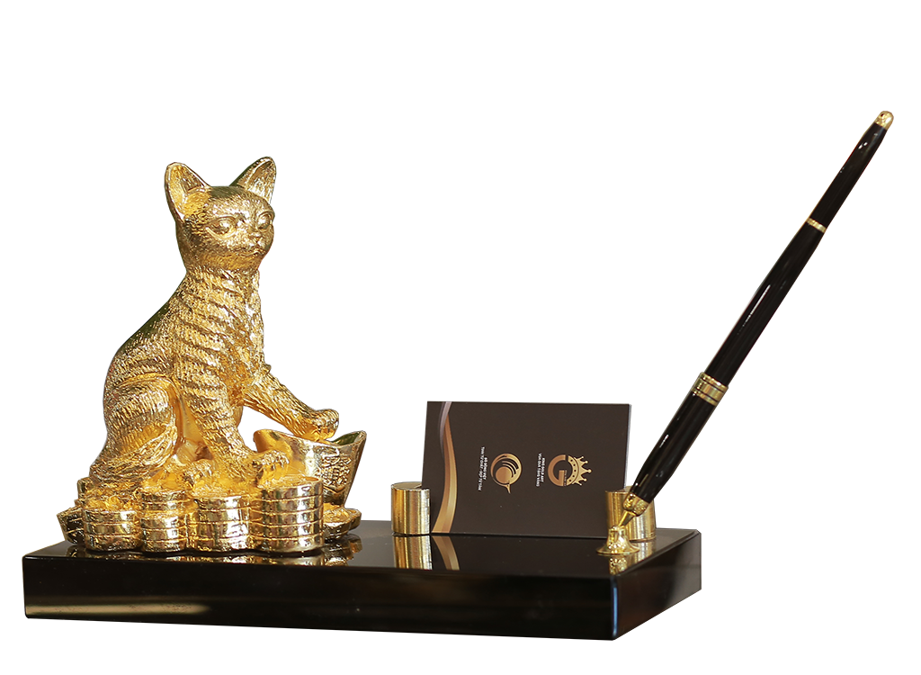 Đế cắm bút tượng mèo phong thủy mạ vàng đẹp tinh xảo