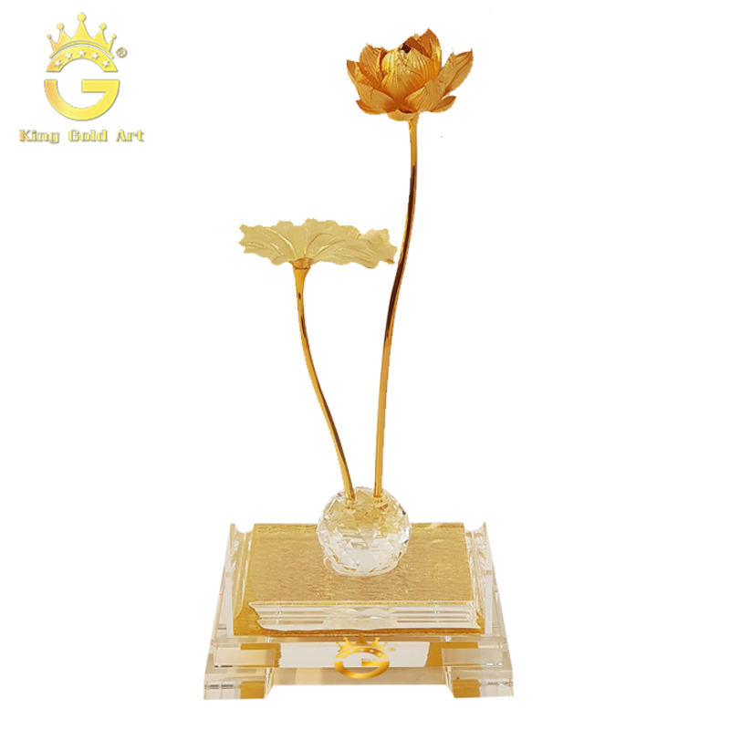 Tác phẩm nghệ thuật bông sen vàng do nghệ nhân King Gold Art chế tác sản xuất độc quyền có một không hai, sản phẩm tinh tế được nhiều khách hàng lựa chọn. King gold lấy hình ảnh hoa sen chế tác nghệ thuật, hoa sen xuất hiện gần gũi với người dân Việt, là loài hoa bổ trợ nguồn khí tốt cho gia chủ. Hoa sen mang nhiều ý nghĩa sâu sắc trong phong thủy, tượng trưng cho sự thanh cao, thoát tục. Sống trong bùn mà chẳng hôi tanh mùi bùn, vẫn đẹp đẽ và tinh khiết.
