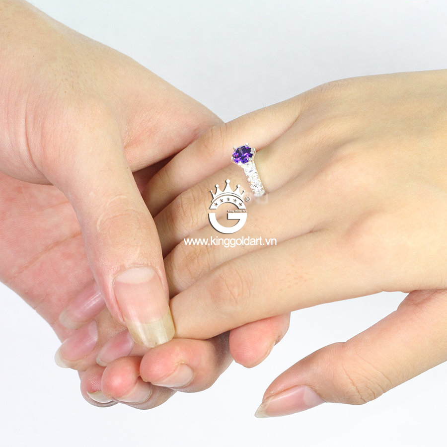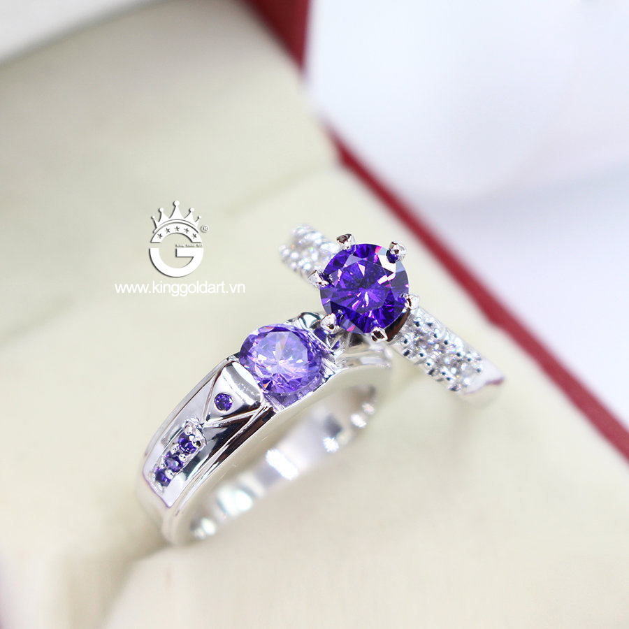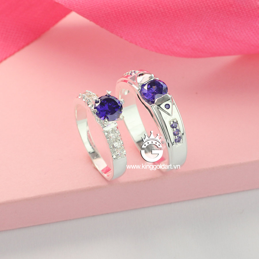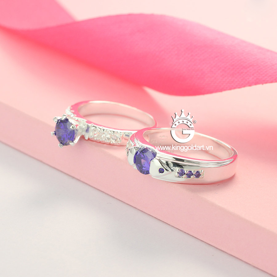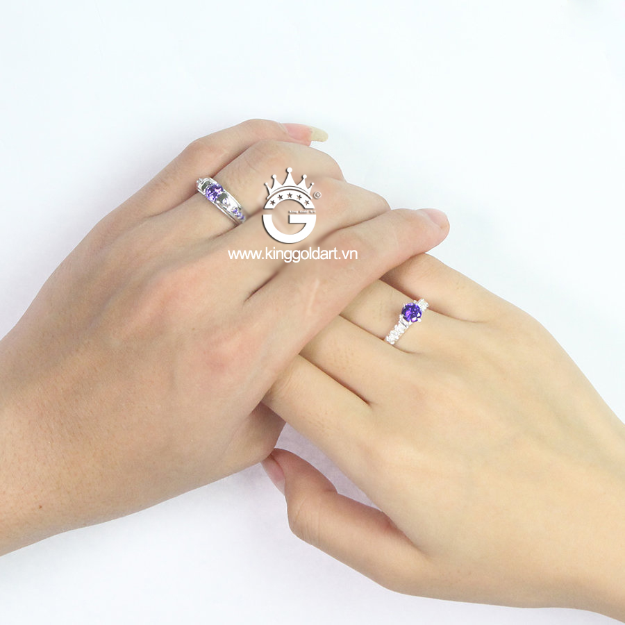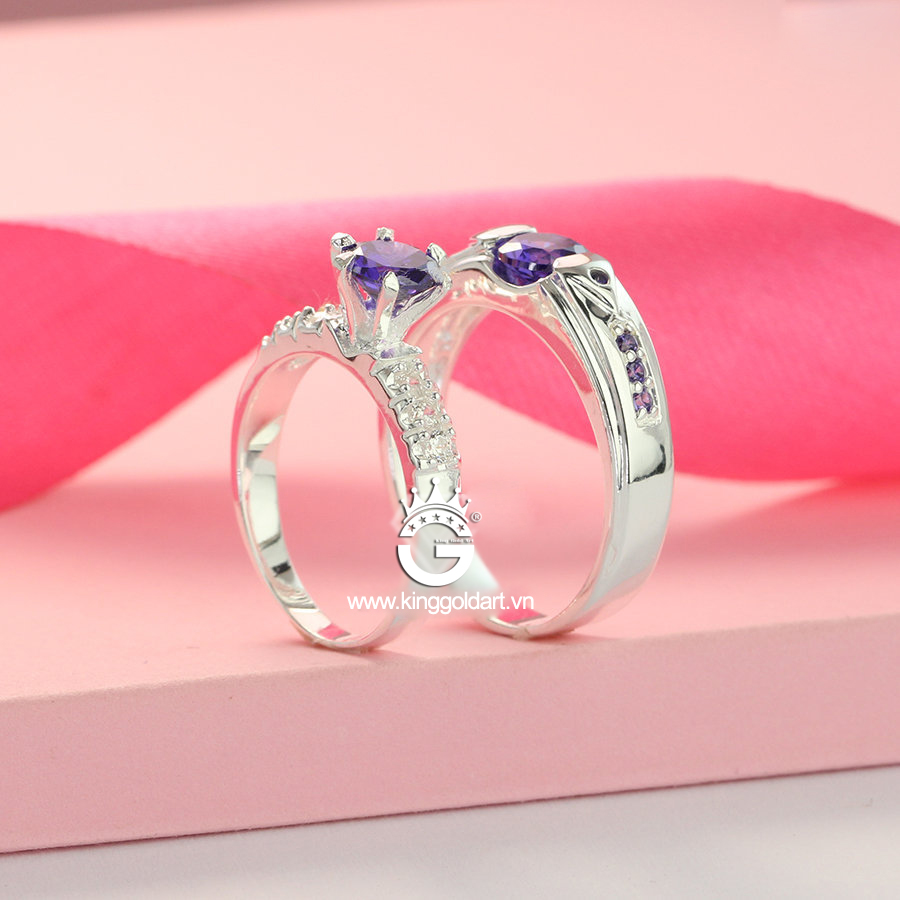 Nhẫn cặp bạc đẹp đính đá tím giá rẻ KGJ08 được thiết kế với quy trình khép kín với máy móc hiện đại cùng đội ngũ thợ kim hoàn lành nghề có nhiều năm kinh nghiệm đam mê với nghề