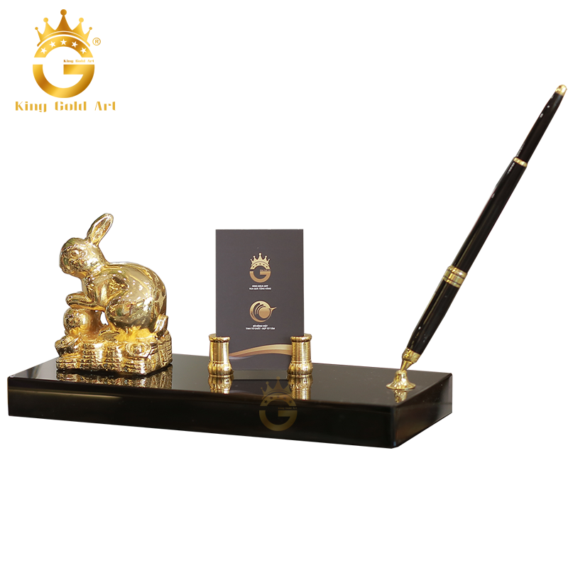 Đế cắm bút tượng thỏ phong thủy mạ vàng đẹp tinh xảo