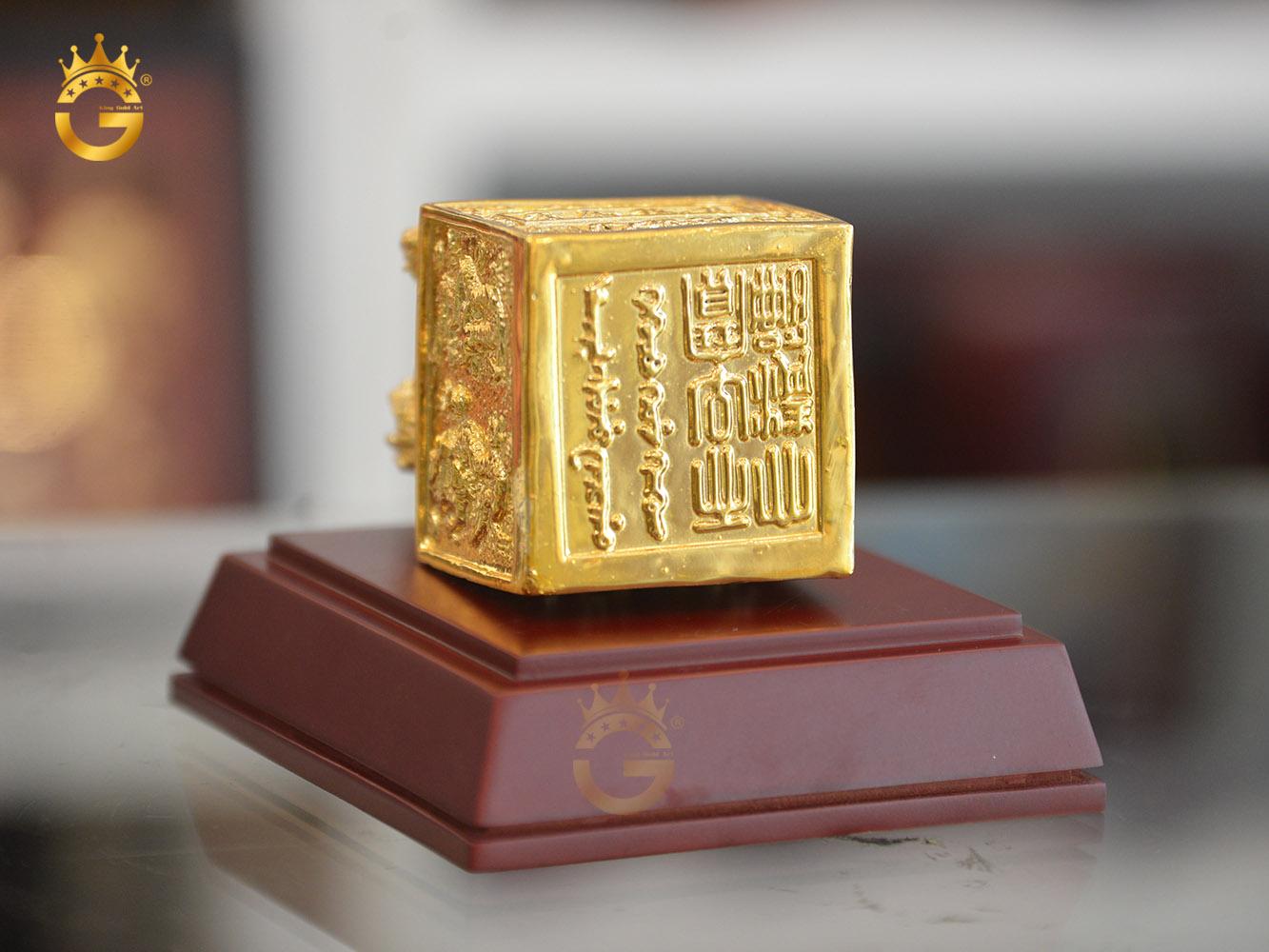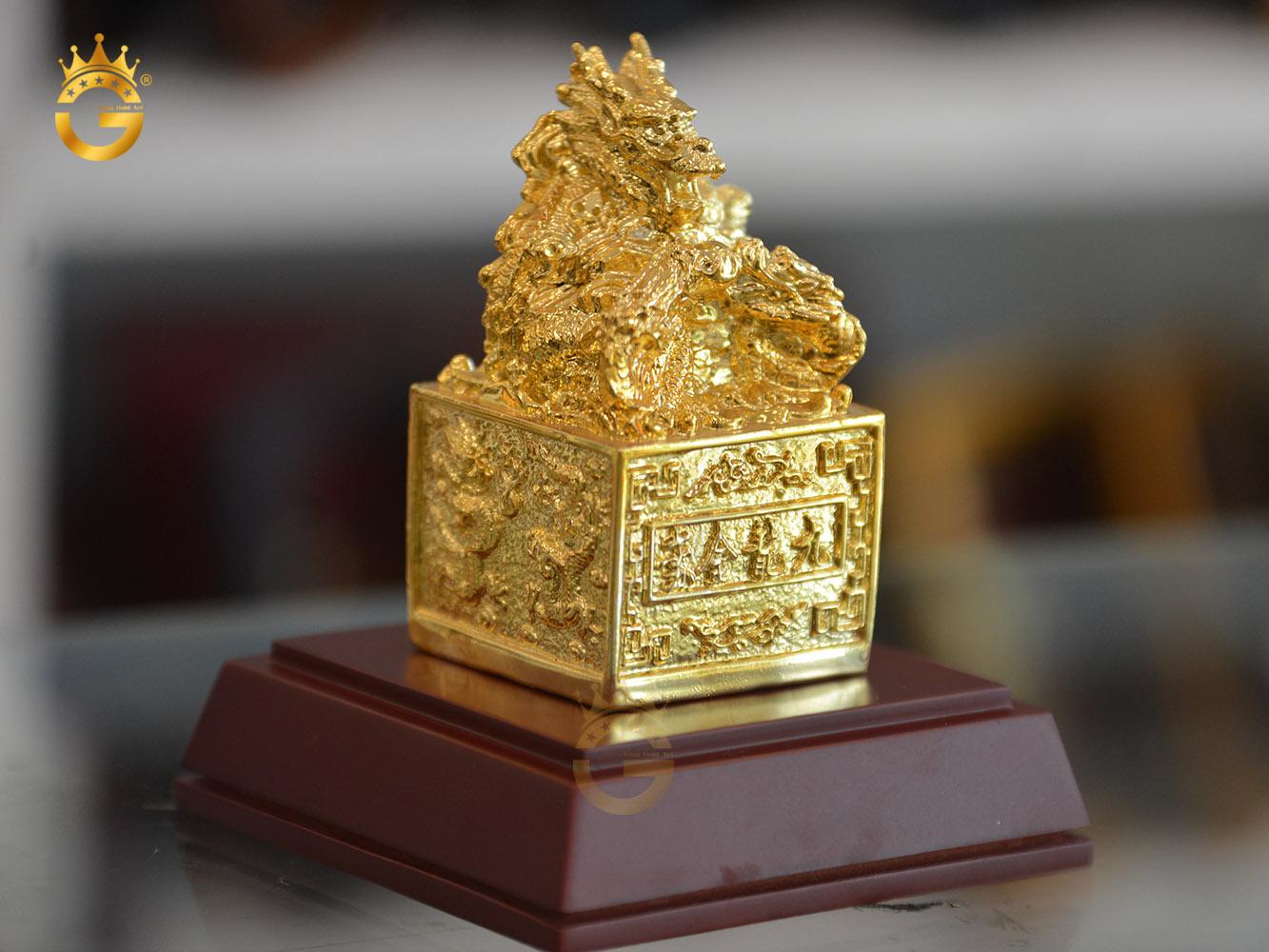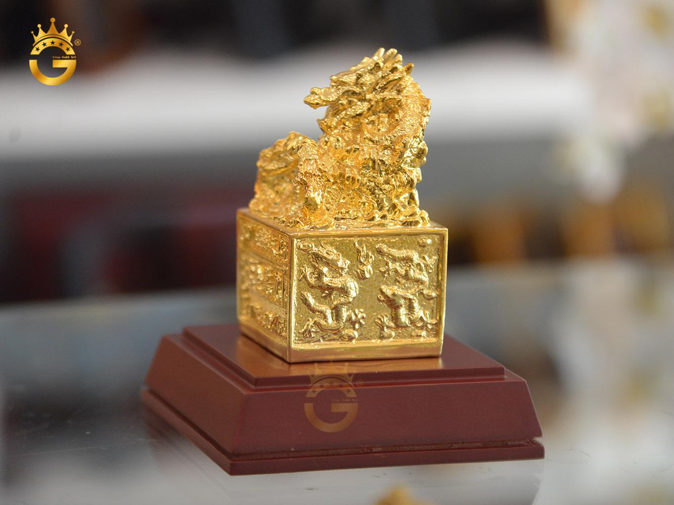 Ấn Rồng mạ vàng là món quà tặng cao cấp mang ý đặc biệt, tượng trưng cho quyền lực tối thượng, được chế tác bởi thương hiệu King Gold Art. Ấn Rồng mạ vàng thích hợp dùng trong sự kiện quan trọng như mừng lên chức, quà tặng Sếp hay Quà tặng ngoại giao cho các nguyên thủ Quốc gia khi đến thăm Việt Nam.