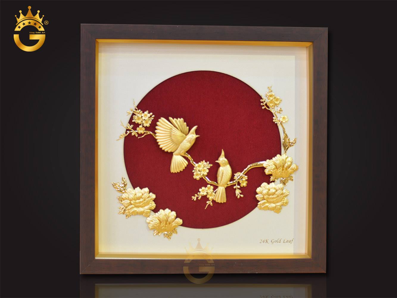 Ý nghĩa tranh đôi chim hoa mẫu đơn bằng vàng lá 24k cao cấp