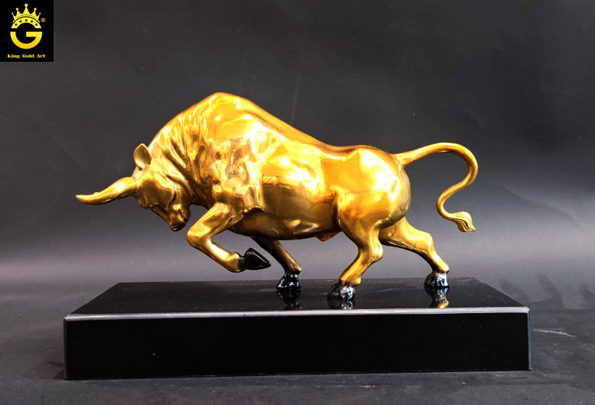 Tượng bò tót được chế tác từ đồng tinh khiết bởi những nghệ nhân lâu năm của King Gold Art, với thiết kế mạnh mẽ đây là biểu tương cho thị trường chứng khoán tăng trưởng mạnh mẽ.